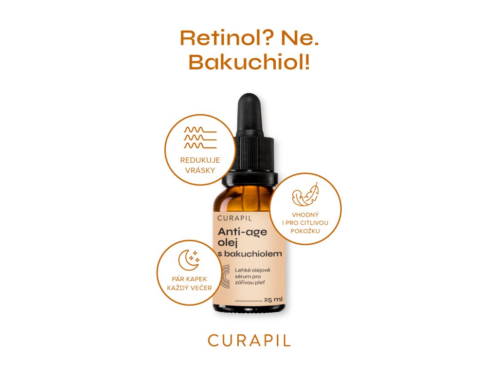 Objevte naši novou hvězdu péče o pleť – Curapil Olejové sérum s bakuchiolem. Jemná, přírodní alternativa retinolu, ideální pro citlivou i zralou pleť.